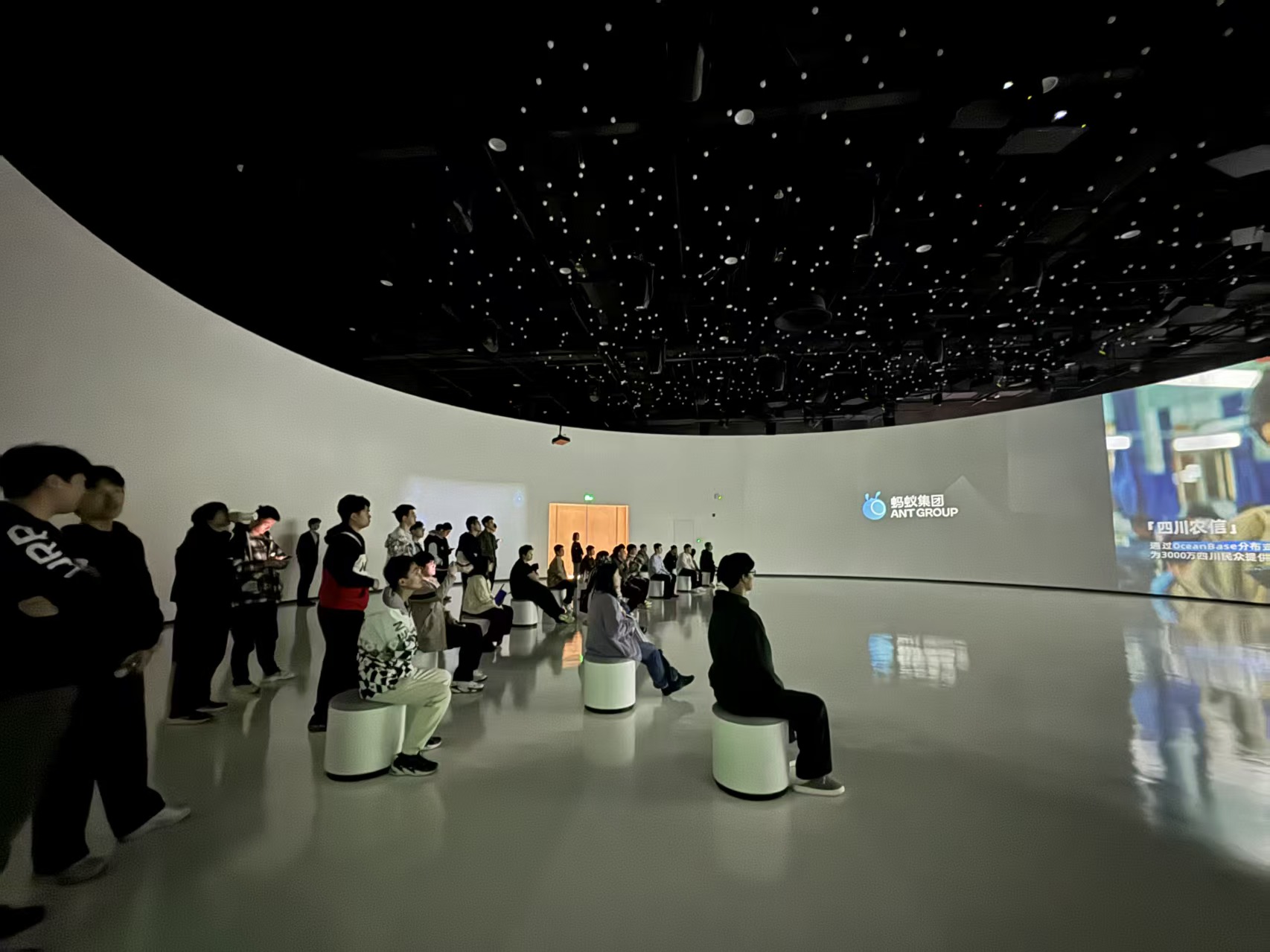 在蚂蚁集团相关负责人的带领下,同学们首先进入蚂蚁集团A空间参观学习。